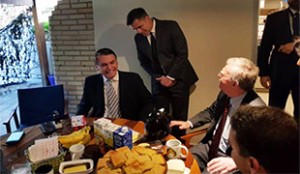 Bolton, que chegou em um comboio às 7h, reuniu-se durante uma hora com Bolsonaro, que tomará posse em janeiro. O brasileiro recebeu seu convidado com uma continência. Para o café da manhã, como é possível ver na foto, o menu incluiu Danoninho.