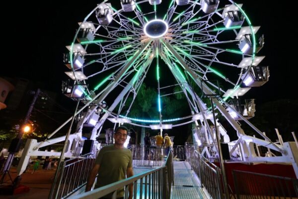 A Prefeitura de Dourados, por meio da Secretaria Municipal de Cultura (Semc), leva ainda mais diversão e encantamento para as famílias com a instalação de uma roda gigante de 26 metros de altura para uso de crianças, jovens ou adultos no Natal Encantado, que está sendo realizado na Praça Antônio João.