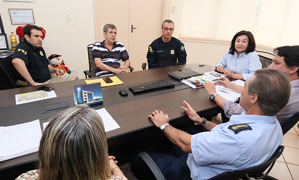 Estavam presentes na reunião os secretários de Fazenda, Carlos Dobes; de Planejamento, Adriana Benício e de Governo, Celso Schuch; além do comandante da Guarda Municipal de Dourados, Divaldo Machado Menezes.