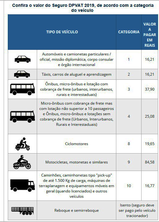 Proprietários de veículos automotores têm até a próxima quinta-feira, dia 31, para pagarem o seguro obrigatório DPVAT (Danos Pessoais causados por Veículos Automotores de Via Terrestre) e não perderem o direito da cobertura do seguro anual, previsto em caso de acidentes de trânsito em todo território nacional.