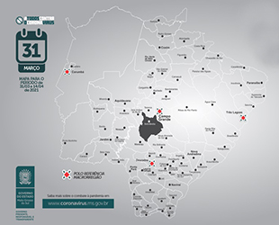 O mapa situacional do Prosseguir apresentado nesta quarta-feira (31) mostra redução de quatro para uma o número de cidades classificadas na bandeira cinza. No novo mapa apenas Sidrolândia saiu do grau alto para o extremo, quando é recomendado apenas o funcionamento de atividades essenciais.