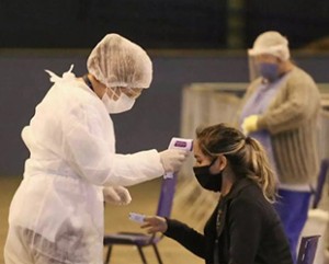 Mulher passa por triagem em polo de atendimento para covid-19 em setembro. (Foto: Marcos Maluf/Arquivo)