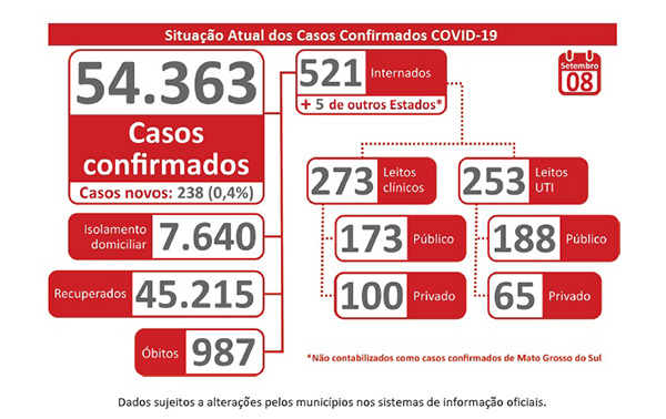 Ao mesmo tempo, o número de internados continua acima de 521, e segundo os gestores a maioria está em hospitais públicos de Mato Grosso do Sul. Confira aqui o detalhamento do boletim apresentado nesta terça-feira.