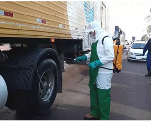 Homem faz a desinfecção em barreira sanitária de Ponta Porã. (Foto: Divulgação Prefeitura)