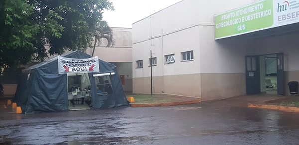 Todas as pacientes e acompanhantes devem passar pela tenda de triagem antes de se dirigirem ao balcão de atendimento (Foto - Divulgação)