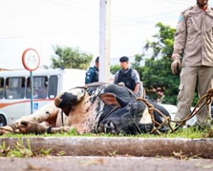 Touro descontrolado deu trabalho para ser capturado pelos bombeiros (Foto/Arquivo: Henrique Kawaminami)