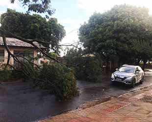 A chuva que durou cerca de 15 minutos, no início da tarde deste sábado (8), derrubou os galhos de uma árvore de grande porte, frente ao Sindicato dos Farmacêuticos de Mato Grosso do Sul na Rua Giocondo Orsi, entre as ruas São Félix e Santana, no bairro Vila Carlota, em Campo Grande.