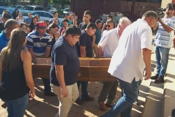 Amigos e familiares carregam caixão com corpo do jornalista Leo Veras (Foto: Marciano Candia/Ultima Hora)