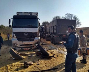 Uma pessoa morreu e outra ficou ferida no acidente envolvendo duas carretas na manhã desta quarta-feira (21) na BR-163, no município de Caarapó.