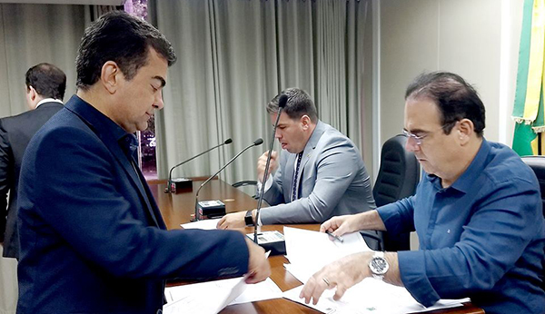 Marçal entregou requerimento a Felipe Orro o pedido de CPI para o interior do Estado (Foto - Gildo Tavares)