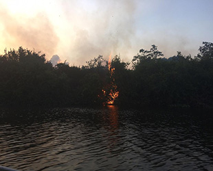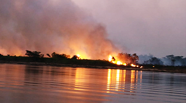 As chamas atravessaram o rio Miranda, que deveria ser aceiro natural, impedindo a passagem do fogo. Mas o vento levou a queimada para o outro lado do rio, chegando a pontos de difícil acesso.