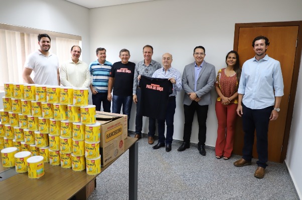 Nesta semana, os ciclistas entregaram 100 latas de leite ninho para o prefeito Gilberto Garcia destinar ao setor de pediatria do Hospital Regional Dr. Francisco Dantas Maniçoba.