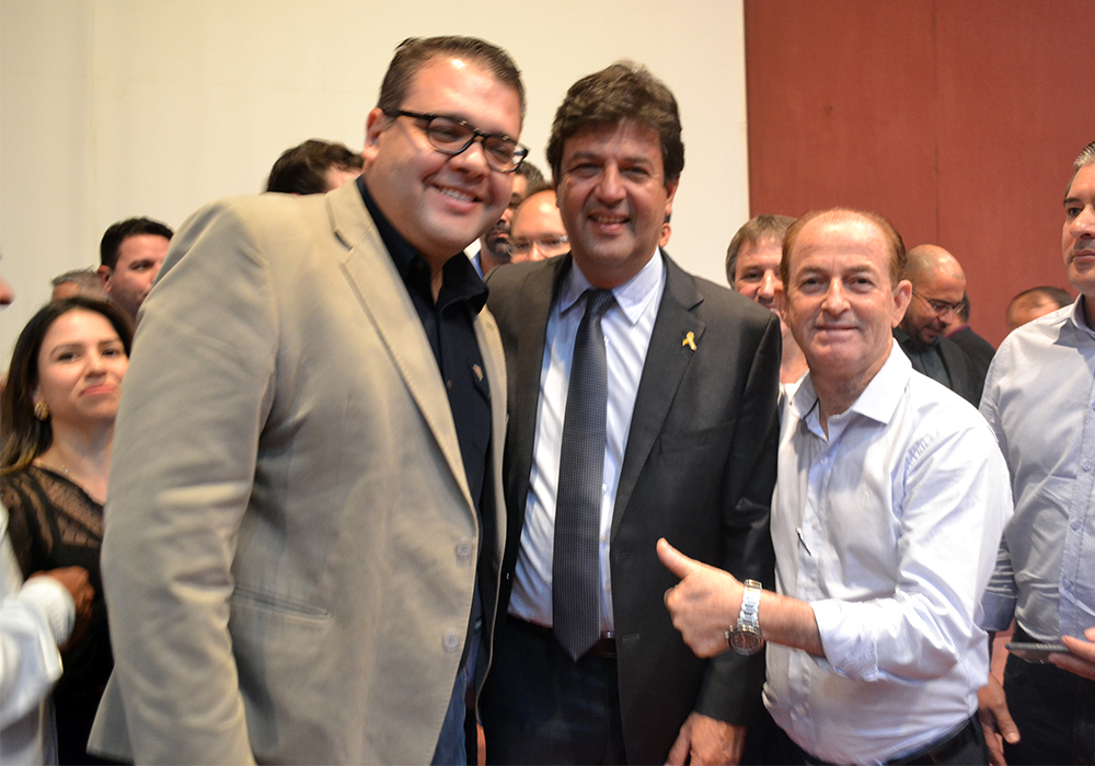 Presidente da Câmara Alan Guedes e o vereador Alberto Alves dos Santos, o Bebeto, com o ministro da Saúde Luiz Henrique Mandetta, durante liberação de recursos, ontem na capital (Foto - João Pires)