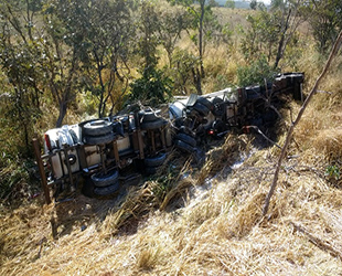 Carreta tomba após colidir com motociclista na BR-158, em Paranaíba. (Foto: Lucas dos Anjos/Site Destak Agora)