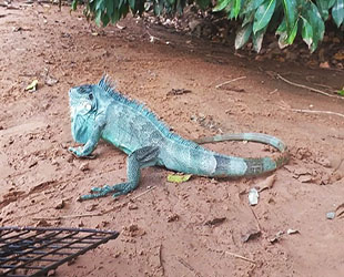 Uma iguana foi capturada na residência de uma idosa de 65 anos em Coxim. De acordo com a Polícia Militar Ambiental (PMA), o animal tinha 1 metro de comprimento.