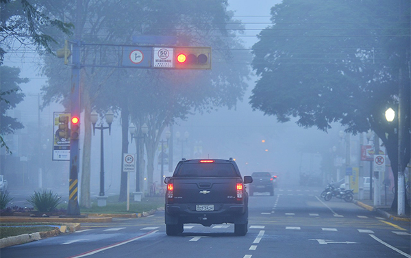 Em Dourados, segunda maior cidade do MS, o dia amanheceu com forte neblina (Foto - Eliel Oliveira)
