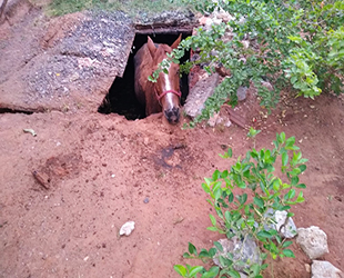 Um cavalo foi resgatado pelo Corpo de Bombeiros de uma fossa, quarta-feira (22), no bairro Cristo Redentor, em Corumbá, a 414 quilômetros de Campo Grande, no Pantanal de Mato Grosso do Sul