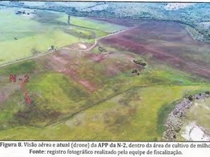 Conforme o MP, no dia 30 de setembro de 2018, a Polícia Militar Ambiental realizou vistoria na Fazenda Anhumas, próxima à Gruta do Lago Azul, e constatou que a APP (Área de Preservação Permanente) da propriedade foi destruída. As matas ciliares, uma nascente e um córrego, perderam espaço para plantações de soja e milho.