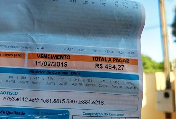 Conta de energia elétrica de quase R$ 500, paga por cliente douradense em janeiro (Foto: Helio de Freitas)