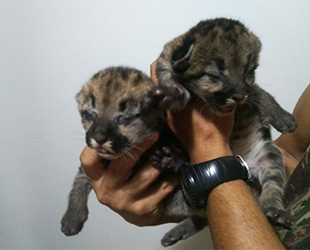Dois filhotes de onça-parda foram resgatadas em um canavial ontem, Nova Andradina, distante 300 quilômetros de Campo Grande.