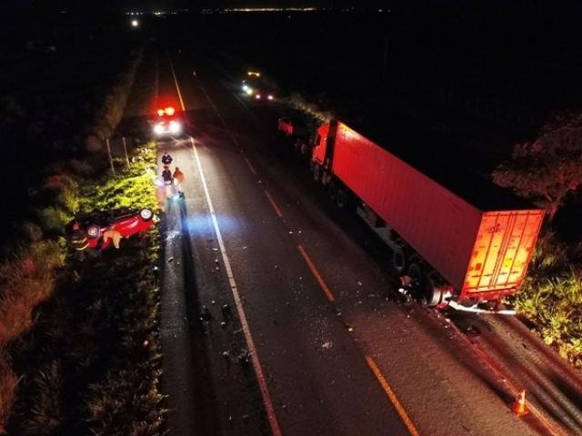Uma colisão entre um Ford Ka e uma carreta na madrugada desta sexta-feira (7) matou um homem de 35 anos, identificado como Marcelo Rocha Maciel. O acidente aconteceu quilômetro 23 da rodovia BR-267 entre Bataguassu e Distrito de Nova Porto XV.