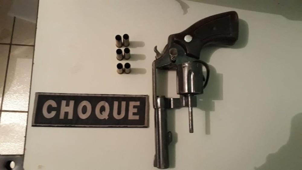 Revólver usado por suspeito morto, segundo a polícia, foi apreendido (Foto: BPChoque/Divulgação)