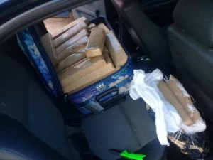 Mala com maconha sobre o banco de Voyage apreendido na madrugada de hoje (Foto: Divulgação)