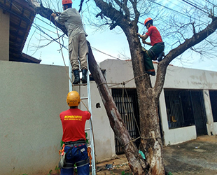Segundo a distribuidora, 40% das solicitações pela falta de energia são decorrentes de árvores e galhos em contato com a rede elétrica, e 30% em razão de objetos lançados à rede em virtude dos ventos fortes.