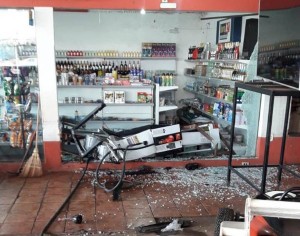 No local, a guarnição encontrou o condutor do veículo, sendo carregado pelo pai, em visível estado de embriaguez. O homem apresentava dificuldade para caminhar e exalava forte odor etílico. Já o veículo se encontrava parado no meio do pátio do posto de combustível, com uma das bombas de combustível arrastada até a parede de vidro da conveniência, tendo quebrado e transfixado uma parede, parando no interior da loja, completamente destruída.