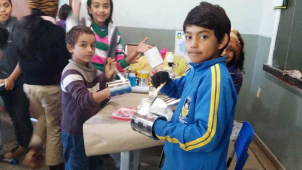 Os professores recebem um kit pedagógico com jogos e atividades referente ao tema. Em sala de aula ele é trabalhado de forma prática com reaproveitamento de latas de alumínio onde os alunos fazem decoração, transformando em porta treco.