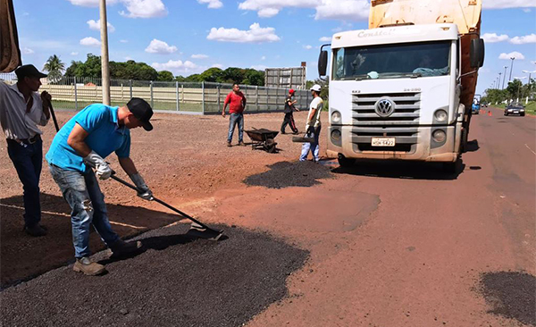 Com a finalidade de melhorar o tráfego nas vias urbanas, a Prefeitura de Dourados está com uma equipe de tapa-buracos na região do prolongamento da Avenida Marcelino Pires. Como disse a prefeita Délia Razuk, uma via com o pavimento em condições normais de uso oferece, além de tudo, mais segurança ao usuário.