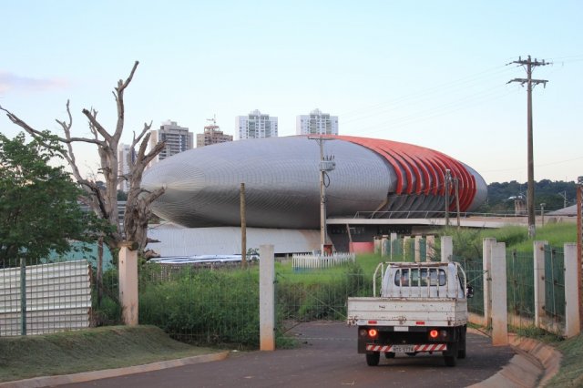 Aquário do Pantanal é construído desde 2012 na avenida Afonso Pena, em Campo Grande. (Foto: Marina Pacheco)