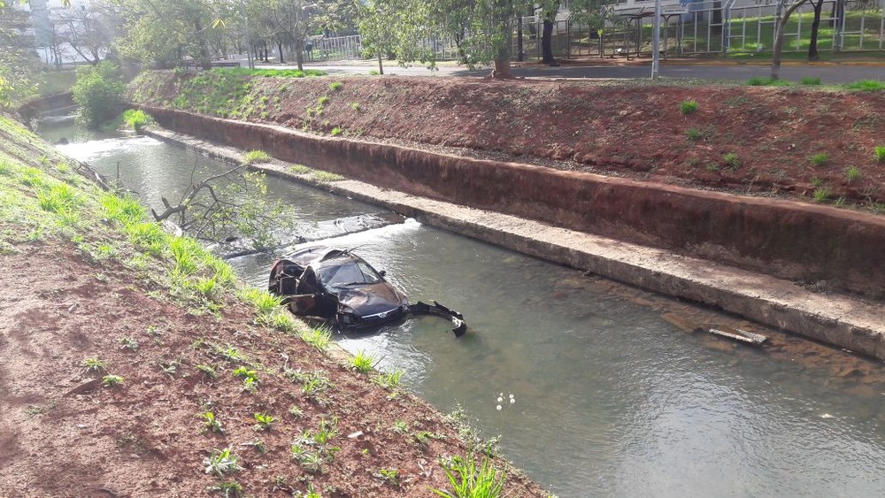 Um homem de 29 anos ficou ferido ao cair com o carro que dirigia no córrego Prosa, na avenida Fernando Corrêa da Costa, em Campo Grande, na madrugada deste domingo.
