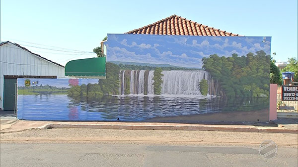 Em toda a extensão do muro cachoeiras, pássaros, flores e árvores em harmonia. O Joel gosta particularmente de paisagens pantaneiras mas ele jamais viu essas cenas de perto: “Eu tenho fregueses em Corumbá e já passei rapidamente por ali mas nunca enxerguei essas coisas, os desenhos vem da minha imaginação mesmo, como eu imagino que deve ser” conta o artista.