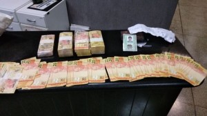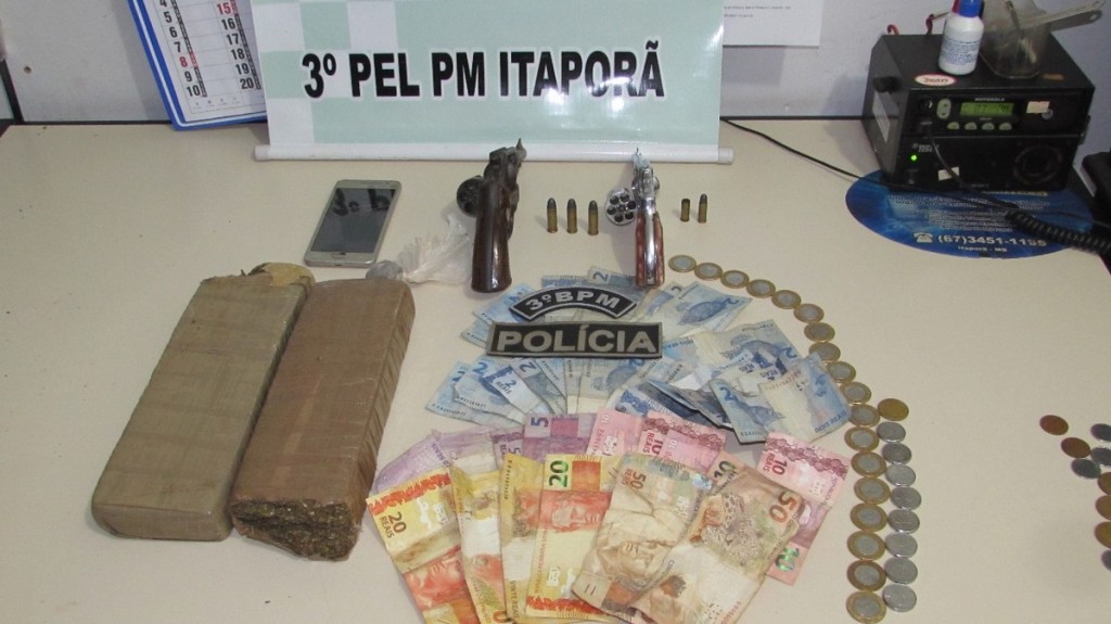 Polícia apreendeu dinheiro do mercado assaltado, além de armas, munições e droga (Foto: Polícia Militar/Divulgação)