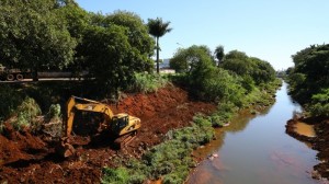 Uma máquina está liberando o acesso para que outras cheguem às margens do rio. Esta primeira etapa vai da rua Aquário até a rua Santa Adélia, no total são 2.400 metros de obras. Durante as obras parte da via será fechada.