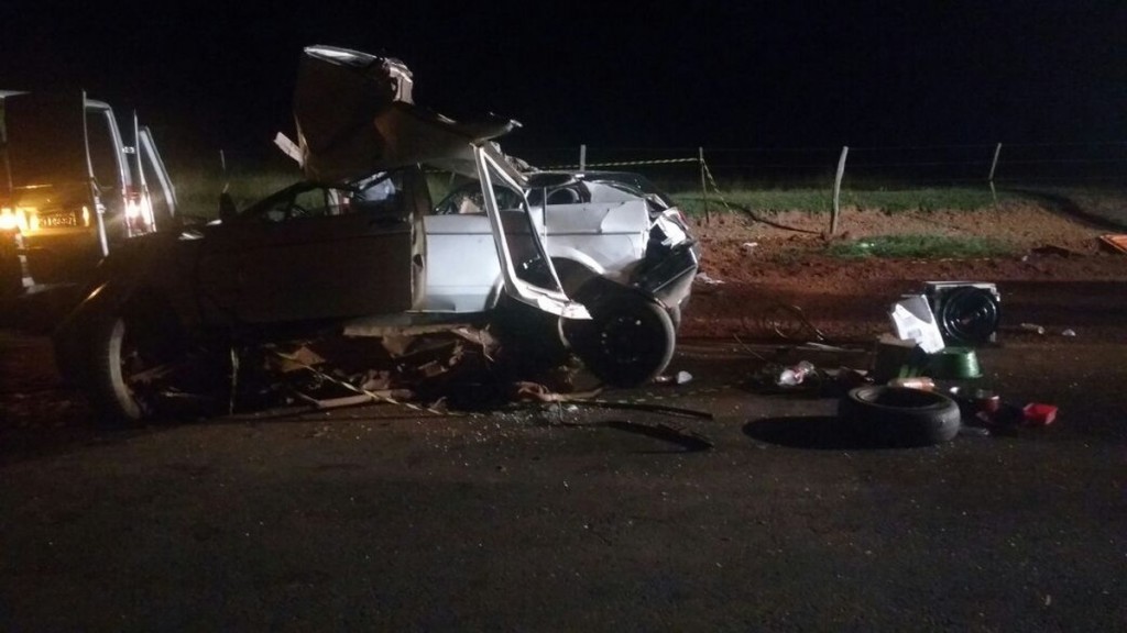 Carro em que estavam três dos cinco mortos em acidente, em MS (Foto: PMR/Divulgação)