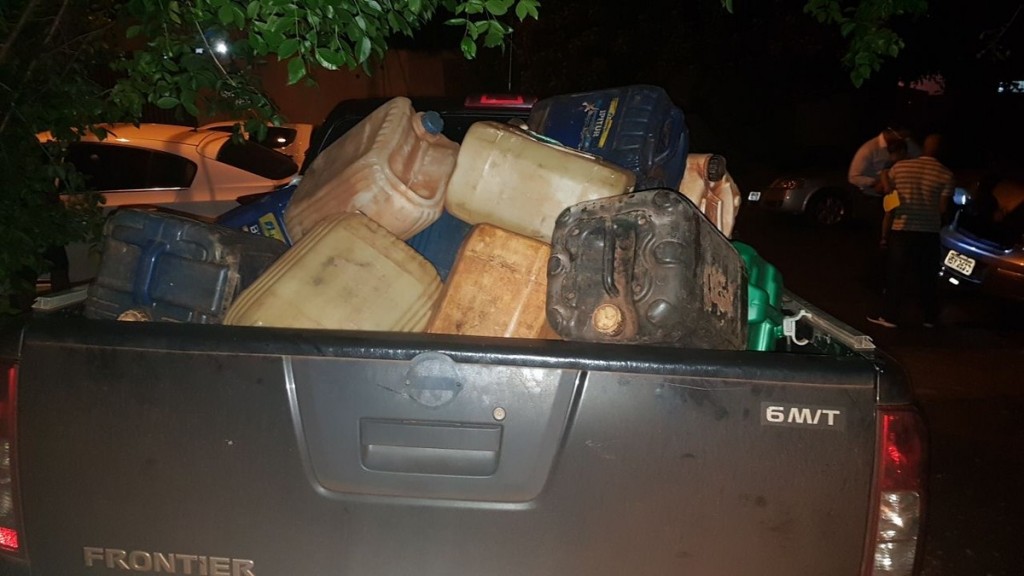 Galões apreendidos com servidores suspeitos de furto em MS (Foto: Polícia Civil/Divulgação)