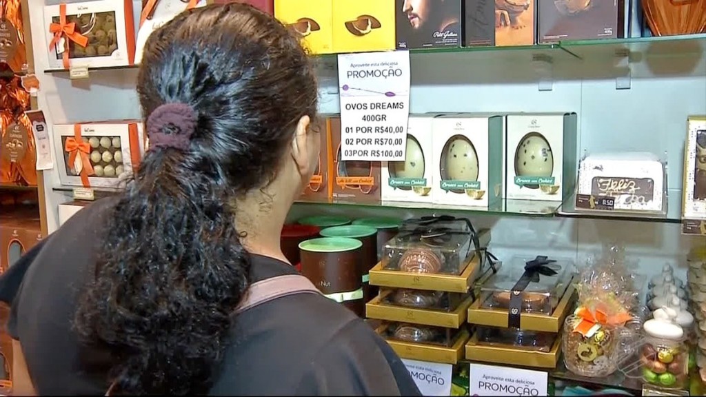 “Eu sempre aconselho que quem quer aquele produto específico, deve procurar antes da Páscoa, porque depois da Páscoa sobra muito pouco”, aconselhou a empresária Ernaine de Campos.