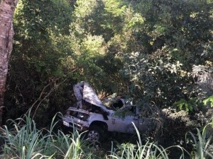 Uma caminhonete carregada com melancias capotou e caiu em uma ribanceira às margens da BR-267 em Maracaju, depois que um dos pneus do veículo estourou.