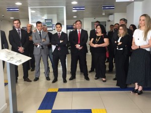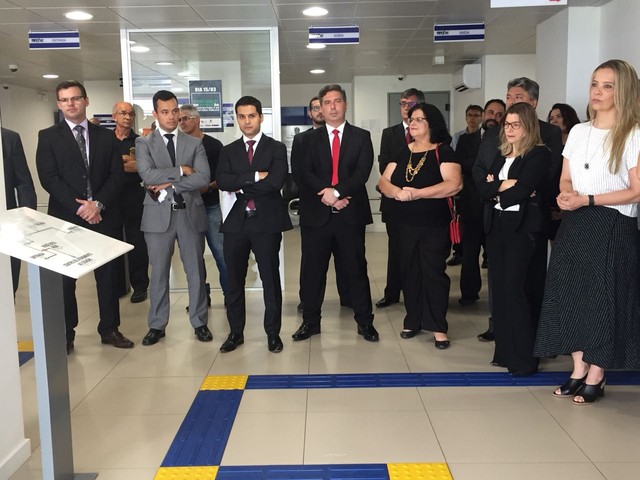 Juizes e procuradores acompanham discurso de colega duretante ato realizado no Fórum Trabalhista (Foto: Dyego Queiroz/G1 MS)