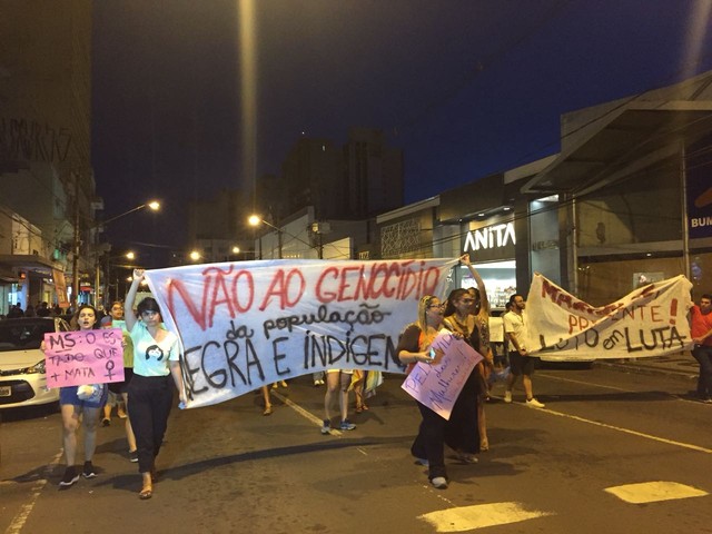 Após a concentração na praça Ary Coelho, o grupo de manifestantes percorreu algumas ruas da capital. Durante o trajeto, levaram cartazes com mensagens de repúdio à morte da vereadora e gritaram palavras de ordem.