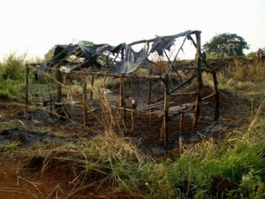 Barraco teria sido queimado por segurança da empresa condenada no Curral de Arames, em Dourados (MS) (Foto: Ascom MPF/Divulgação)