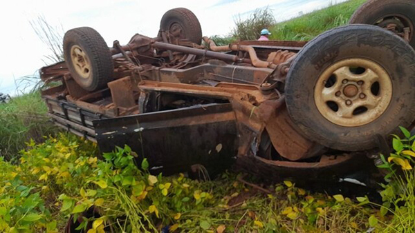 Duas pessoas ficaram feridas após uma caminhonete F1000 capotar, na manhã desta sexta-feira (10), na BR-060, em Paraíso das Águas,
