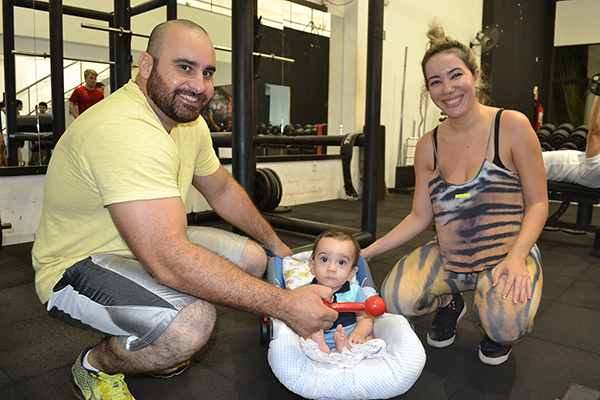 Manter a forma sempre foi algo determinante para o casal Priscila e Rosberg Carvalho. Casados há ano, eles chamam a atenção de todos na academia que frequentam pelo fato de levarem o filho desde os três meses de idade, sempre bem acomodado e seguro em um ‘bebê conforto’. Eles se revezam nos exercícios para não perderem de vista o garoto, já acostumado com a rotina atlética dos pais, pelo menos duas vezes na semana.
