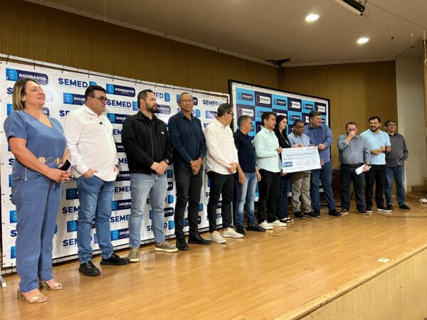 Elias Ishy participa de entrega simbólica de cheques às unidades de ensino do município. (Foto: A.Frota/Assecom)