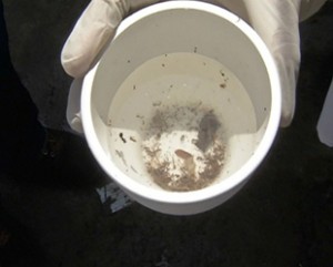 Água com larvas do mosquito que transmite a dengue encontrada em Campo Grande, MS — Foto: Reprodução/TV Morena