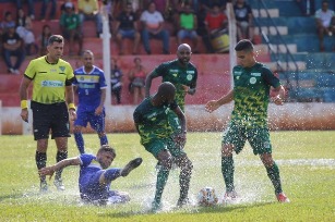 Jogo começou com campo encharcado após temporal em Ponta Porã (Foto: Franz Mendes)