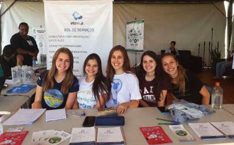 Equipe da Ínteri Jr - empresa júnior na área de Relações Internacionais, apresentando seu serviço de consultoria empresarial no estande da UFGD (Foto - Divulgação)