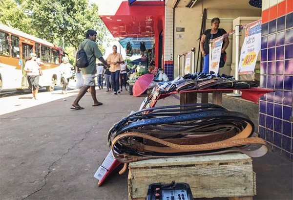 Produtos expostos na calçada no centro de Campo Grande. (Foto: Tatiana Marin)
